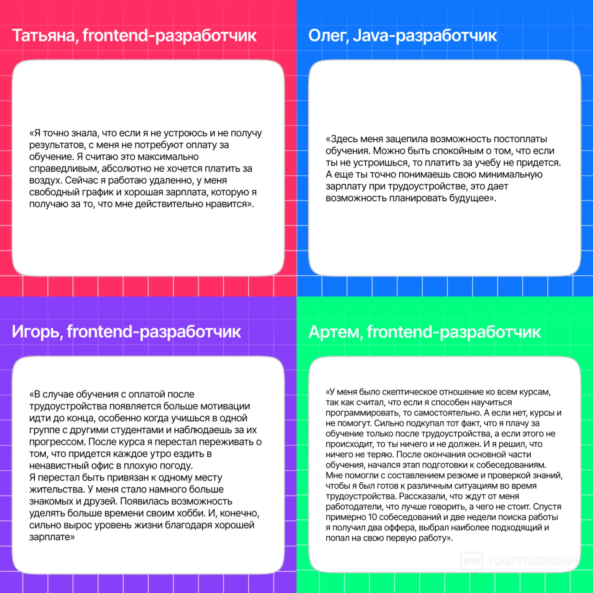 Ознакомившись с условиями обучения и отзывами выпускников, мы поняли, что у формата постоплаты есть свои преимущества и сложности. Разберем их подробнее.