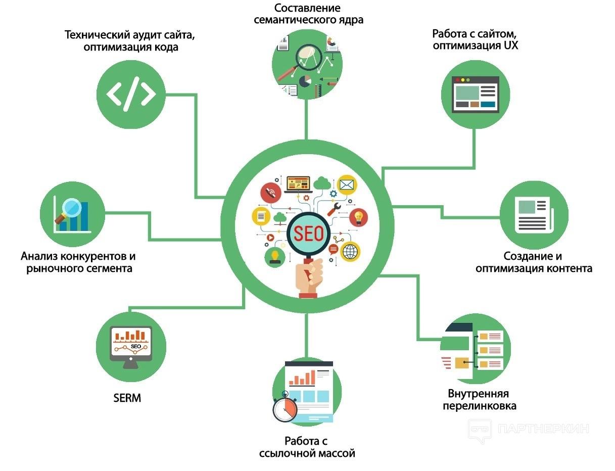 SEO-специалист оптимизирует внутренний и внешний контент на сайте для попадания в ТОП выдачи поисковых систем. В его задачи входит продвижение ресурса нативными способами с учетом рекомендаций поисковых роботов. Специалист подбирает подходящие ключевые запросы, анализирует ЦА, отслеживает доступность сайта и удобство использования ресурса.